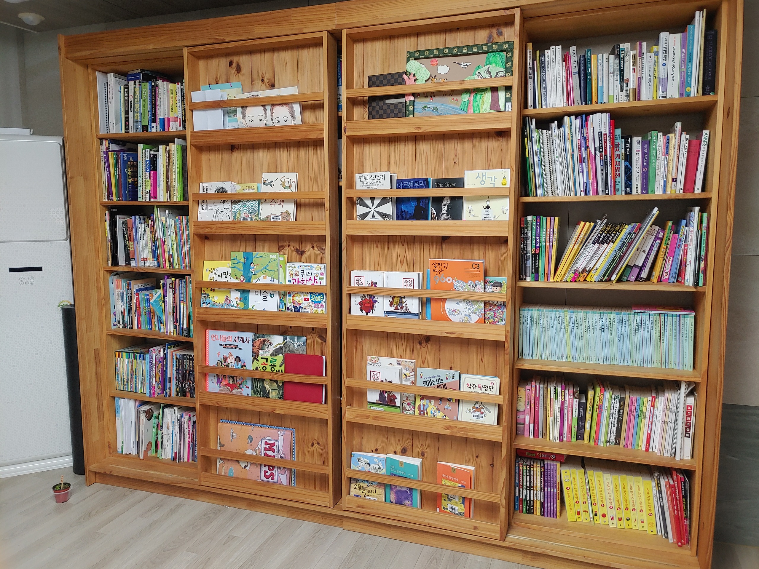 중간에 보면 몸통이 완성되어 있어서 부담스러울까봐 거실에 잠깐 있다가 다시 가보면 책장 완성!